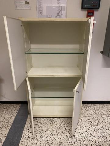 Armadio in legno colore bianco con ripiani interni in vetro Dimensioni: cm 80 x 42,5 x 144 h