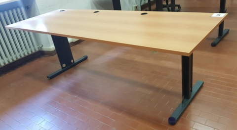 Tavoli in legno con supporti metallici e 3 fori per passaggio cavi Dimensioni: cm 225 x 80 x 71,5h